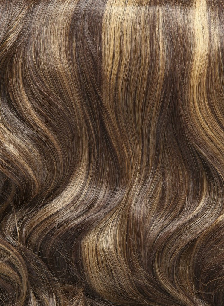 Stranded heat resistant one piece clip in extensions are simple and easy to attach with 5 extension clips on one track of hair. It adds extra length and volume to your hair in a few simple steps.