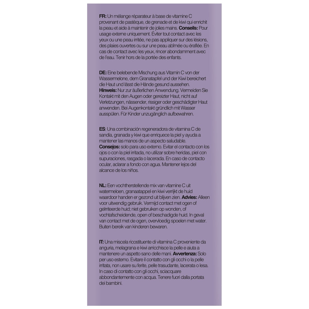 Watermelon is a natural toner that shrinks the tissues and refreshes the skin. The high water content in watermelon banishes dull and dehydrated skin to keep the skin supple and soft. This pairs with exfoliating Pomegranate and Omega 3 rich Kiwi to help to create renewed and repaired skin.