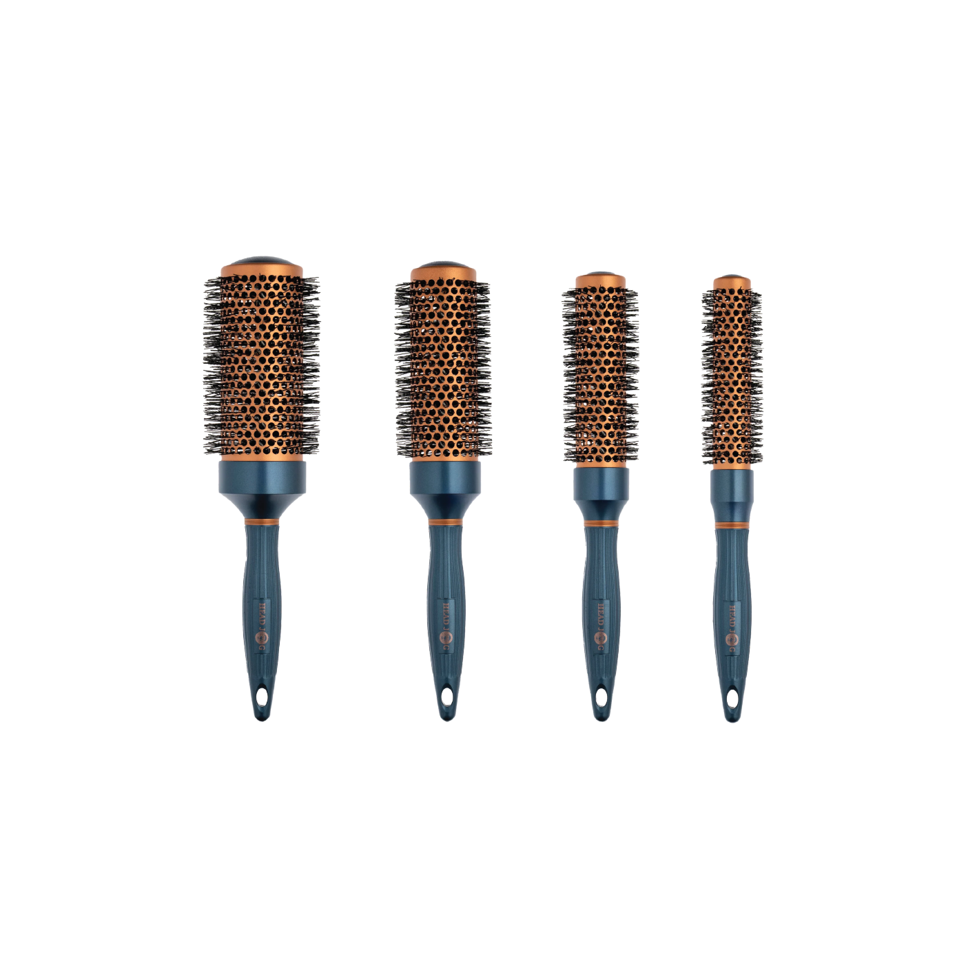 Twilight blue brushes with copper barrels.