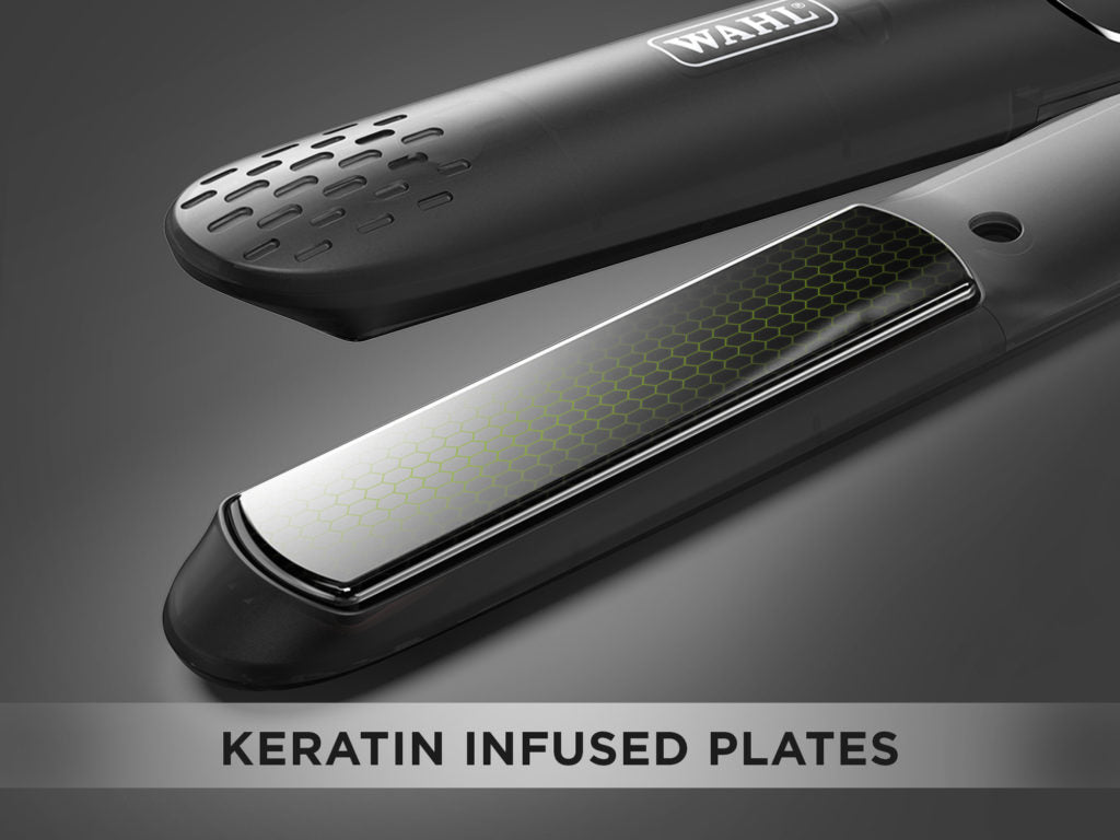 Keratin infused plates helps protect the hair, providing a shinier and silkier finish.